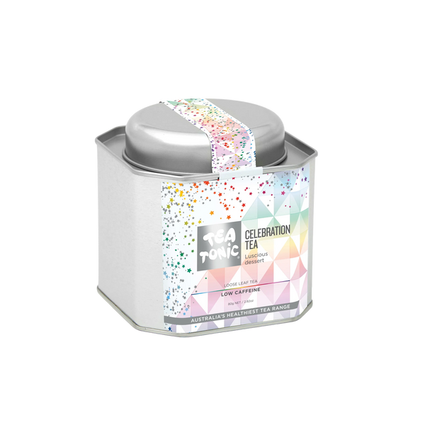 Tea Tonic's Celebration Tea loose leaf tea tin contains 80g of tea.