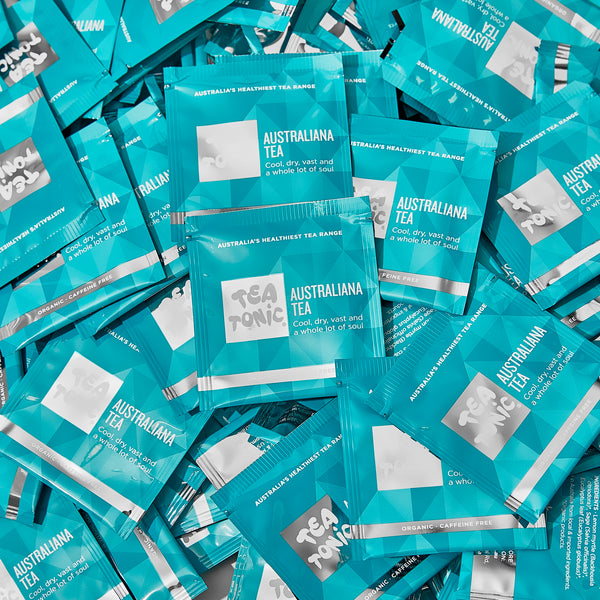 Why stop at 20? This bulk bag of 200 individually wrapped unbleached tea bags contains a refreshing blend of Australian natives, Eucalyptus & Lemon Myrtle. Australiana Tea is reflective of our landscape and the people who inhabit it. A true Aussie brew. This anti-microbial and anti-bacterial tea helps to open up your upper respiratory sinuses. With a fresh lemon taste this tea is ideal for combatting sweats and hot flushes, it feels like a fresh walk in the Australian bush.