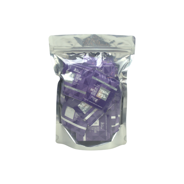 Ingredients: Lavender (Lavandula angustifolia)*, Passionflower (Passiflora incarnata)*, Peppermint (Mentha piperita)*, Butterfly Pea (Clitoria ternatea), Monk Fruit (Siratia grosvenorii)*