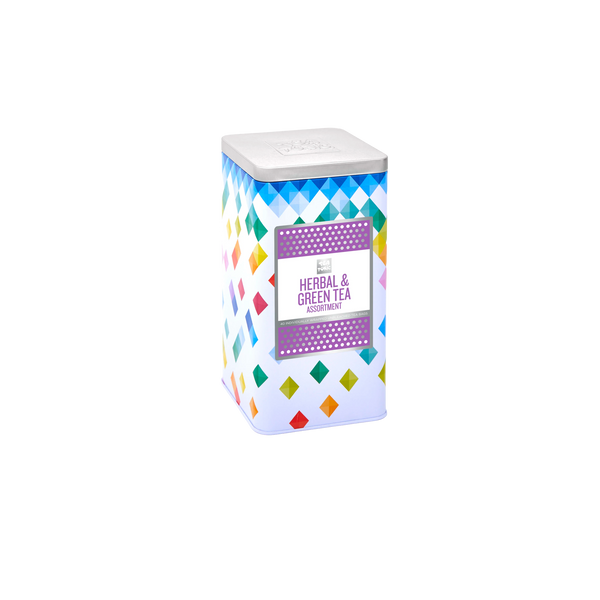 A colourful array of our Herbal and Green Tea Combination in a tall display tin.