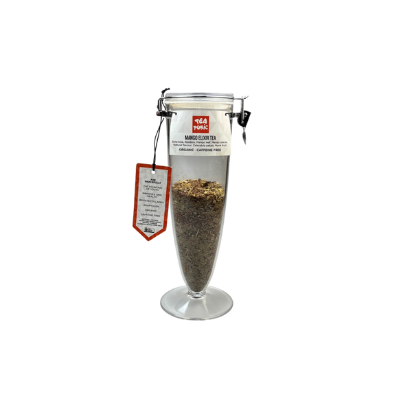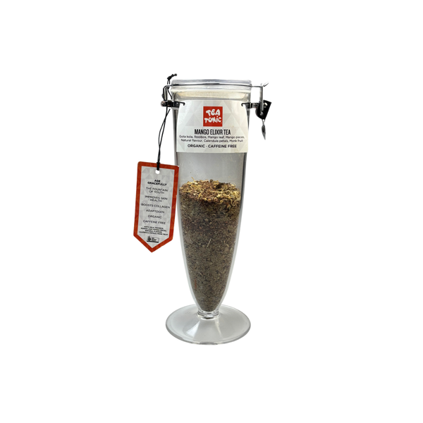 Ingredients: Gotu Kola (Centella asiatica)*, Rooibos (Aspalathus linearis)*, Mango Leaf*, Mango Pieces (Mangifera indica)*, Natural Flavour, Calendula Petals (Calendula officinalis)*, Monk Fruit (Siraitia grosvenorii)*