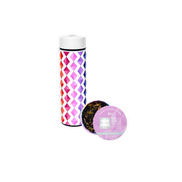 Experience the perfect tea on the go with our Thermal Tea Bottle with Infuser, paired with a travel tin of Body Reset Tea Loose Leaf. This 450ml thermal bottle ensures your tea stays at the ideal temperature, while the built-in infuser allows for effortless steeping.