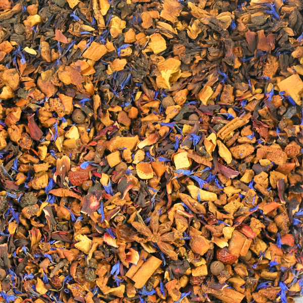 Mulled Wine Recipe: Add 5 teaspoons of Warm-Spicy Loose-Leaf tea (tied in a cotton cloth) to 1 litre of red wine. Simmer with lid on for 10 min, do not allow to boil. Serve garnished with a slice of orange. Add sugar to taste.